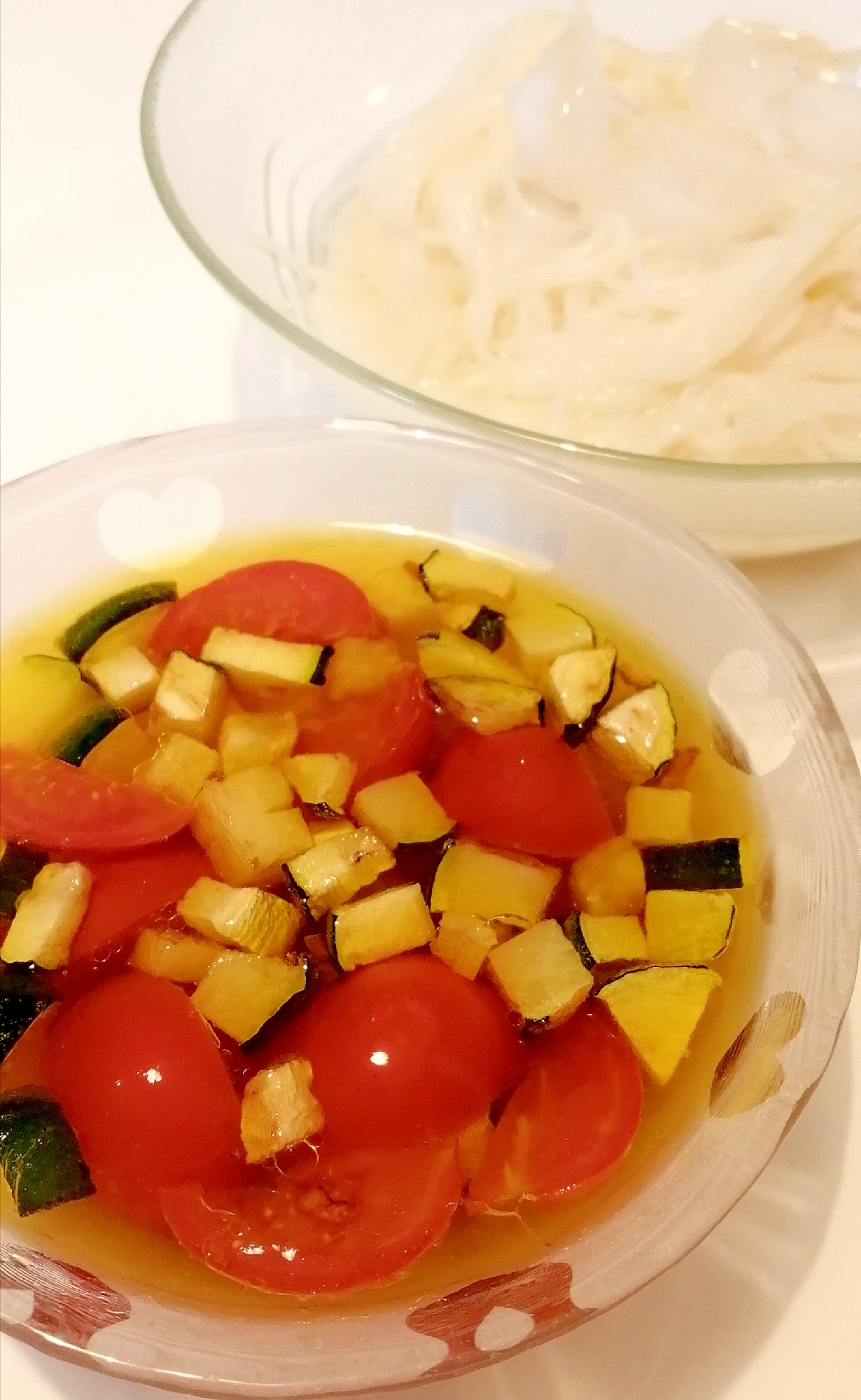 絶品 ズッキーニとトマトのそうめんつゆ レシピ 作り方 By Mywayuayu 楽天レシピ
